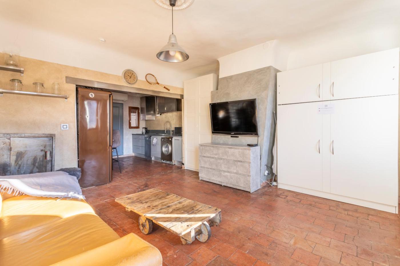 Appartement 1 Chambre. The air-conditioned apartment has 1 bedroom and 1 bathroom with a bath and a hairdryer. Guests can make meals in the kitchen that features a stovetop, a refrigerator, a dishwasher and a microwave. The apartment features a coffee machine, a seating area, a sofa, heating and a flat-screen TV. The unit has 1 bed.