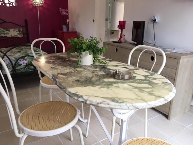 Chambre Double. This double rooms standout feature is the hot tub. Guests will find a refrigerator, kitchenware, a microwave and a tea and coffee maker in the fully equipped kitchen. The double room also features a barbecue. The double room offers air conditioning, a private entrance, a terrace with garden views as well as a private bathroom boasting a shower. The unit has 1 bed.
