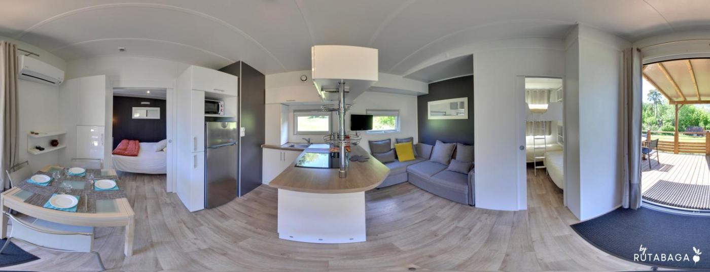 Mobile Home 1 Chambre. Doté dune terrasse de 10 m², le mobile home comprend un coin salon avec canapé, une télévision à écran plat, une salle de bains privative avec articles de toilette gratuits et une cuisine entièrement équipée. ;