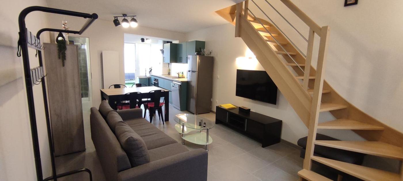 Maison de Ville 2 Chambres. The holiday home features 2 bedrooms and 1 bathroom with a walk-in shower and free toiletries. Guests will find a stovetop, a refrigerator, a dishwasher and kitchenware in the well-fitted kitchen. The holiday home also has a barbecue. The holiday home has parquet floors, a seating area with a flat-screen TV, a washing machine, a coffee machine as well as ancourtyard view. The unit offers 2 beds.