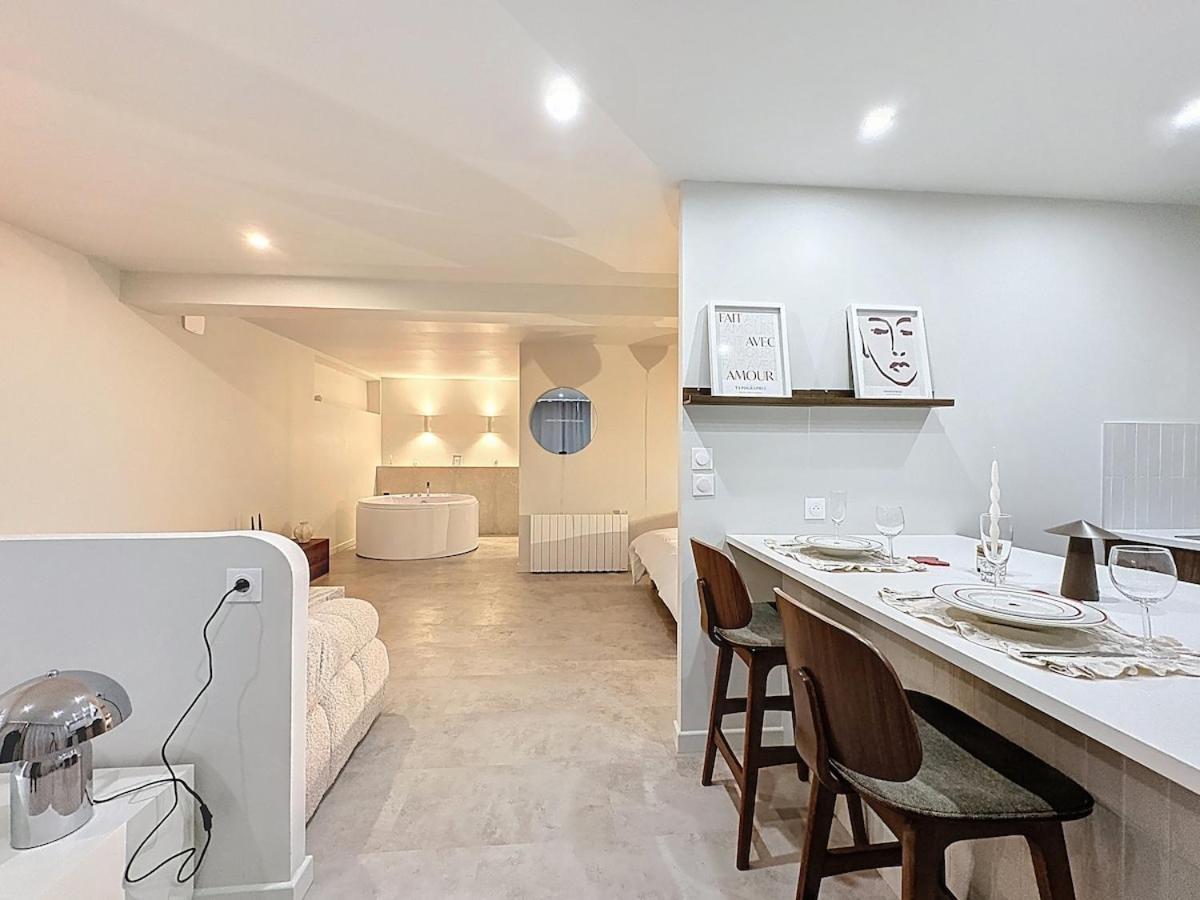Appartement 1 Chambre. This apartment features a hot tub and a spa bath. The apartment has 1 bedroom and 1 bathroom with a walk-in shower and free toiletries. In the kitchen, guests will find a stovetop, a refrigerator, a microwave and a toaster. The apartment features a coffee machine, a seating area, a dining area, a flat-screen TV with streaming services, as well as a quiet street view. The unit has 1 bed.