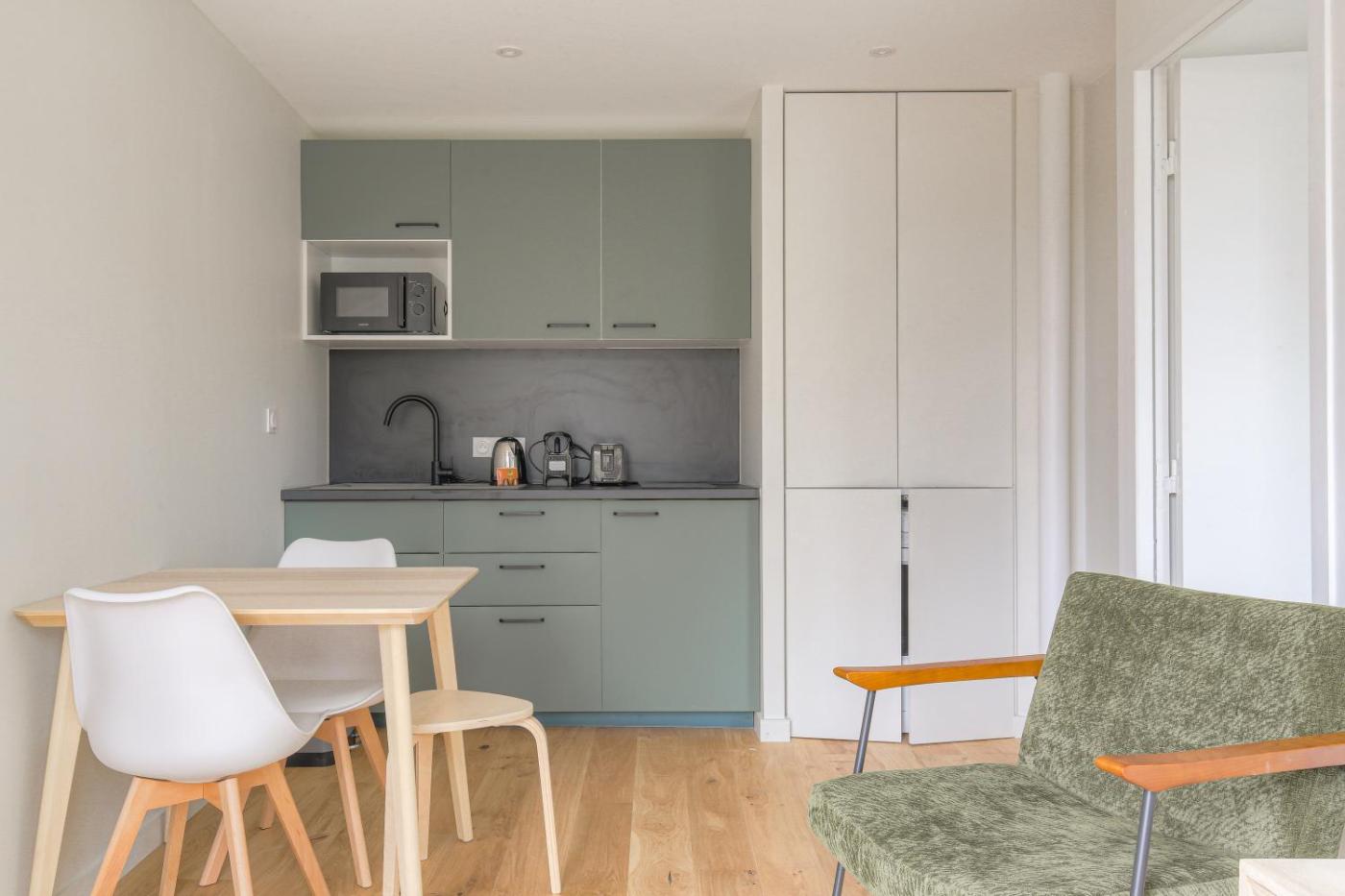 Appartement 1 Chambre. The air-conditioned apartment has 1 bedroom and 1 bathroom with a shower and a hairdryer. Meals can be prepared in the kitchen, which has a stovetop, a refrigerator, a dishwasher and an oven. The apartment offers a washing machine, a coffee machine, a dining area, a wardrobe, as well as a TV. The unit has 1 bed.