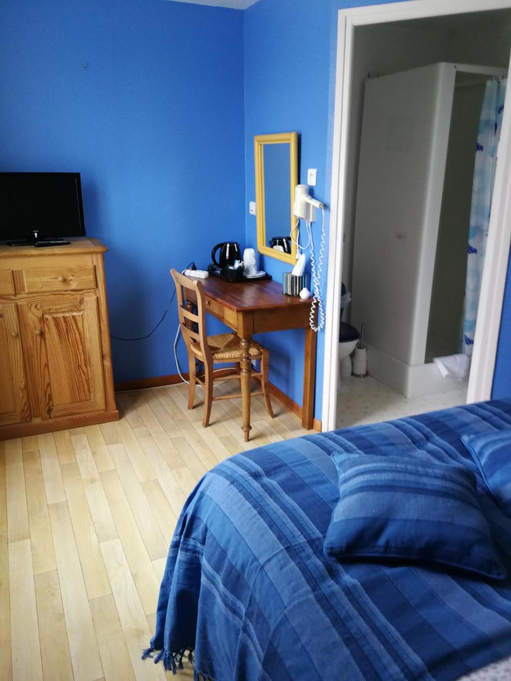 Chambre Double Marine. Decorated in blue tones, this room offers satellite TV. This room cannot accommodate an extra bed. ;