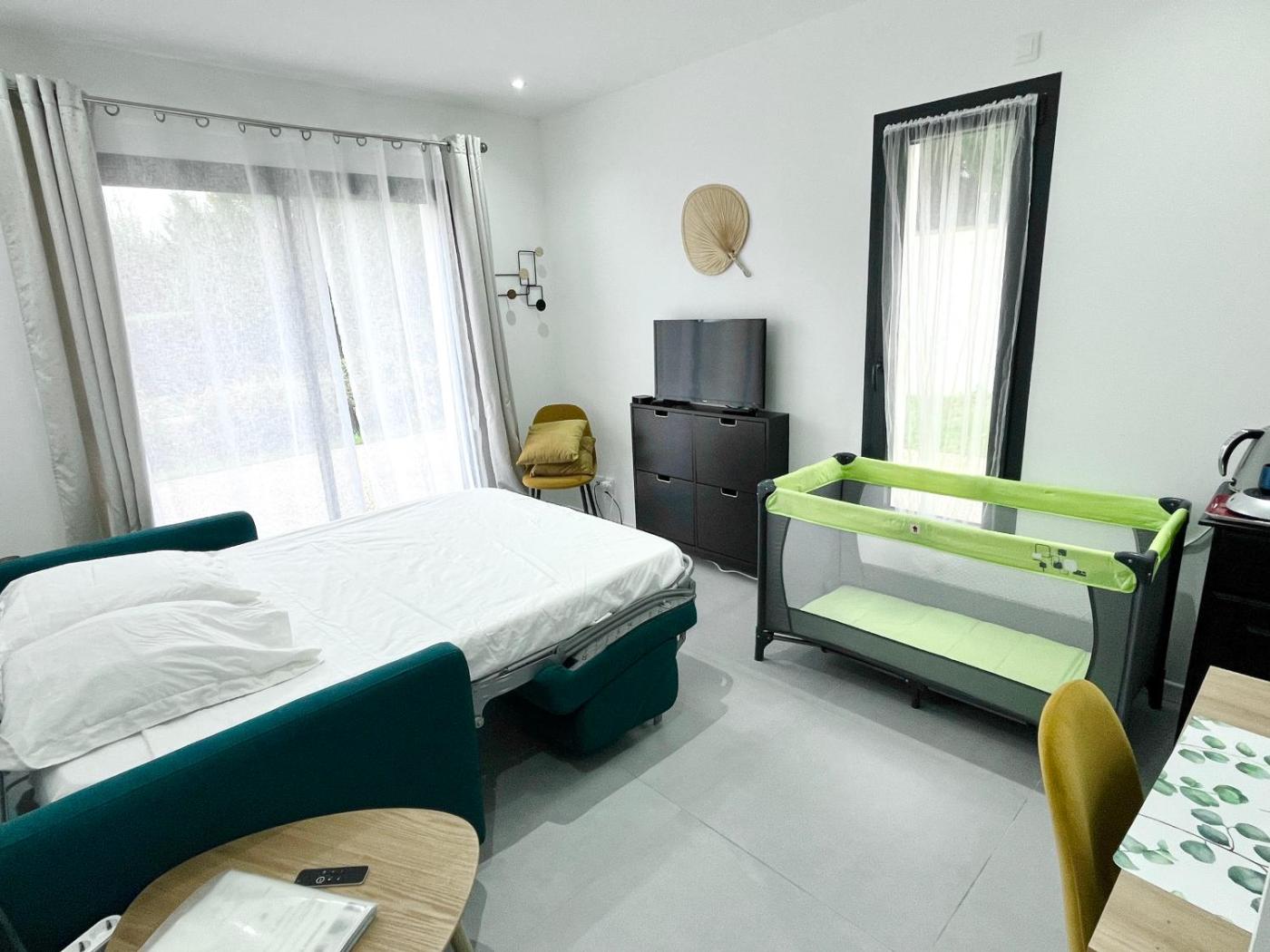 Chambre Double avec Salle de Bains Privative. The double room offers a private entrance, soundproof walls, as well as a private bathroom featuring a walk-in shower and a hairdryer. The double room provides a tea and coffee maker, a dining area, heating, as well as a flat-screen TV. The unit offers 1 bed.
