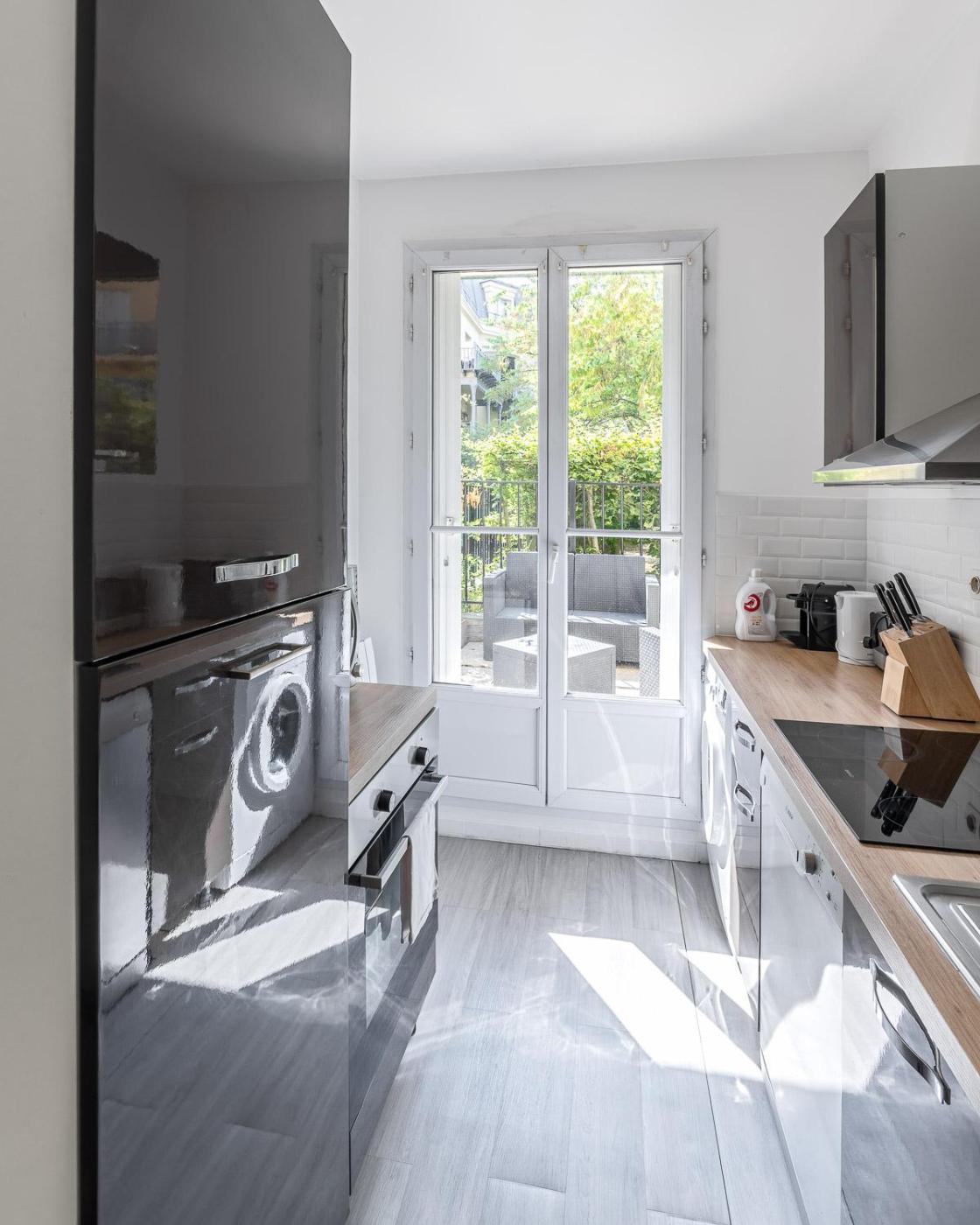 Appartement 2 Chambres. This apartment includes 1 living room, 2 separate bedrooms and 1 bathroom with a bath and a hairdryer. The well-fitted kitchen features a stovetop, a refrigerator, a dishwasher and kitchenware. The unit has a washing machine, garden views, a terrace and winechampagne is offered for guests. The unit has 3 beds.