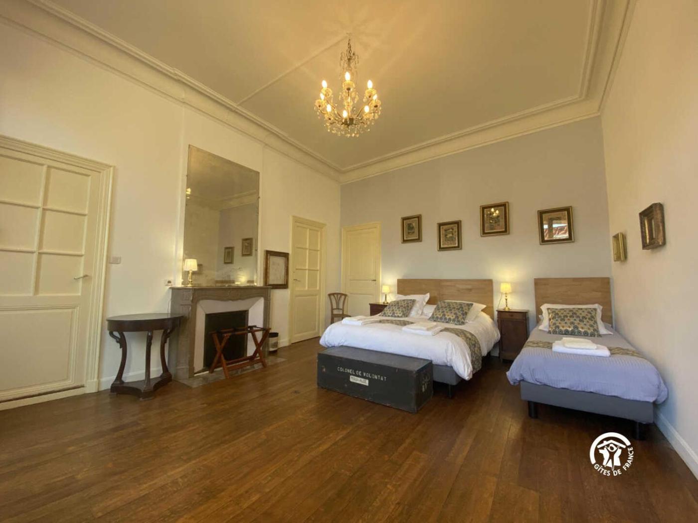 Chambre Triple. The fireplace is the standout feature of this triple room. The triple room has a terrace. The unit has 2 beds.
