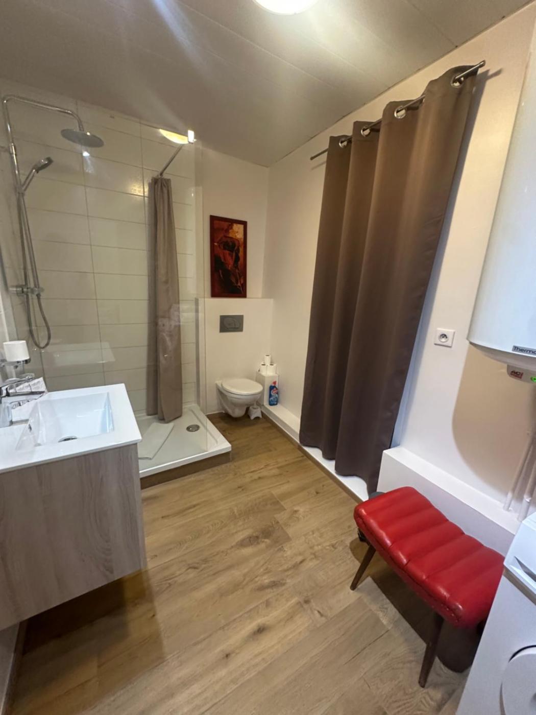 Appartement Supérieur. This spacious apartment comes with 1 living room, 3 separate bedrooms and 1 bathroom with a walk-in shower and free toiletries. The fully equipped kitchen has a stovetop, a refrigerator, a dishwasher and kitchenware. The apartment features a flat-screen TV, a washing machine, a private entrance, a tea and coffee maker as well as a quiet street view. The unit has 5 beds.