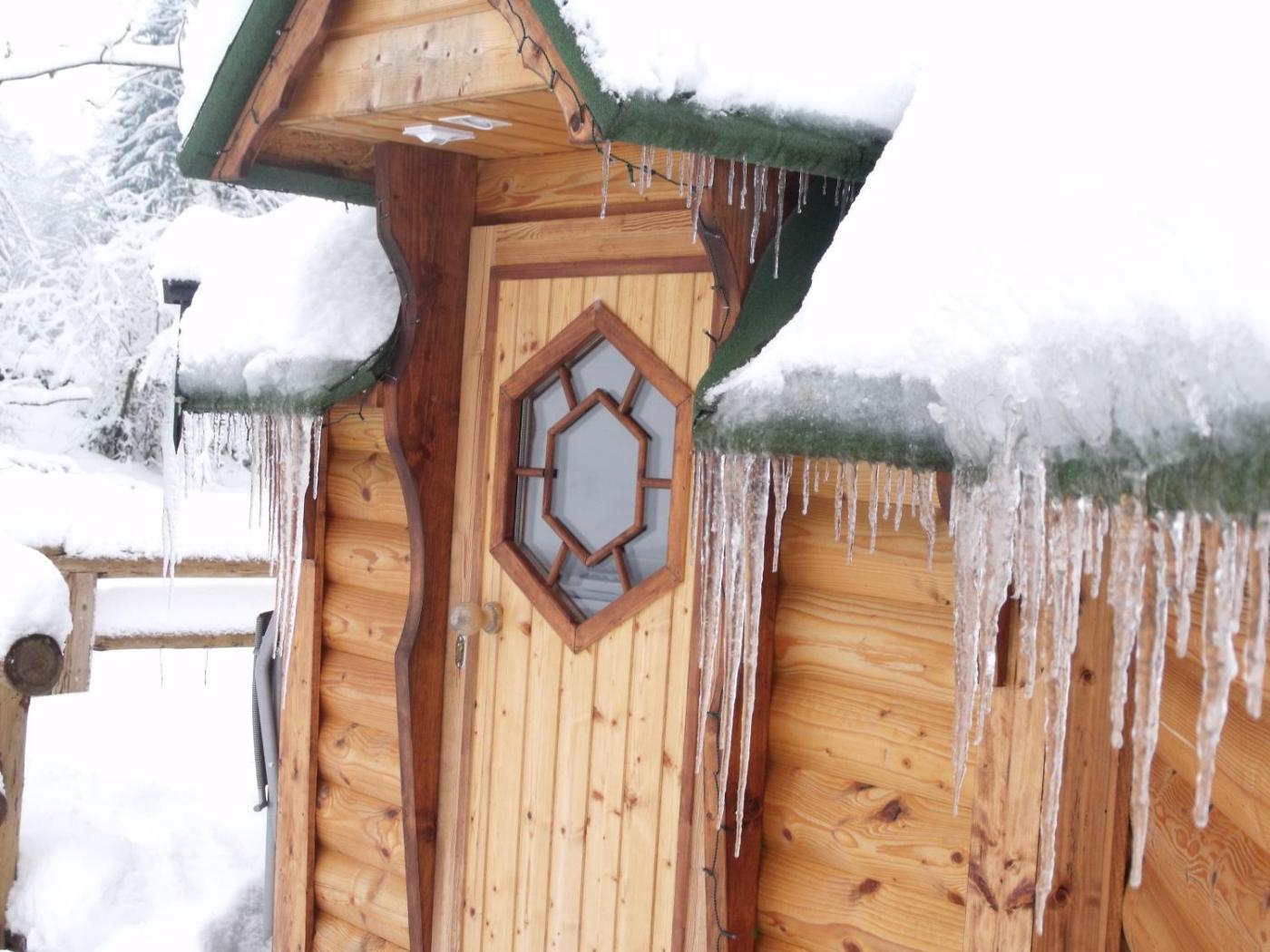 Yourte. Cette tente est équipée dune terrasse, d’un barbecue et du chauffage. ;