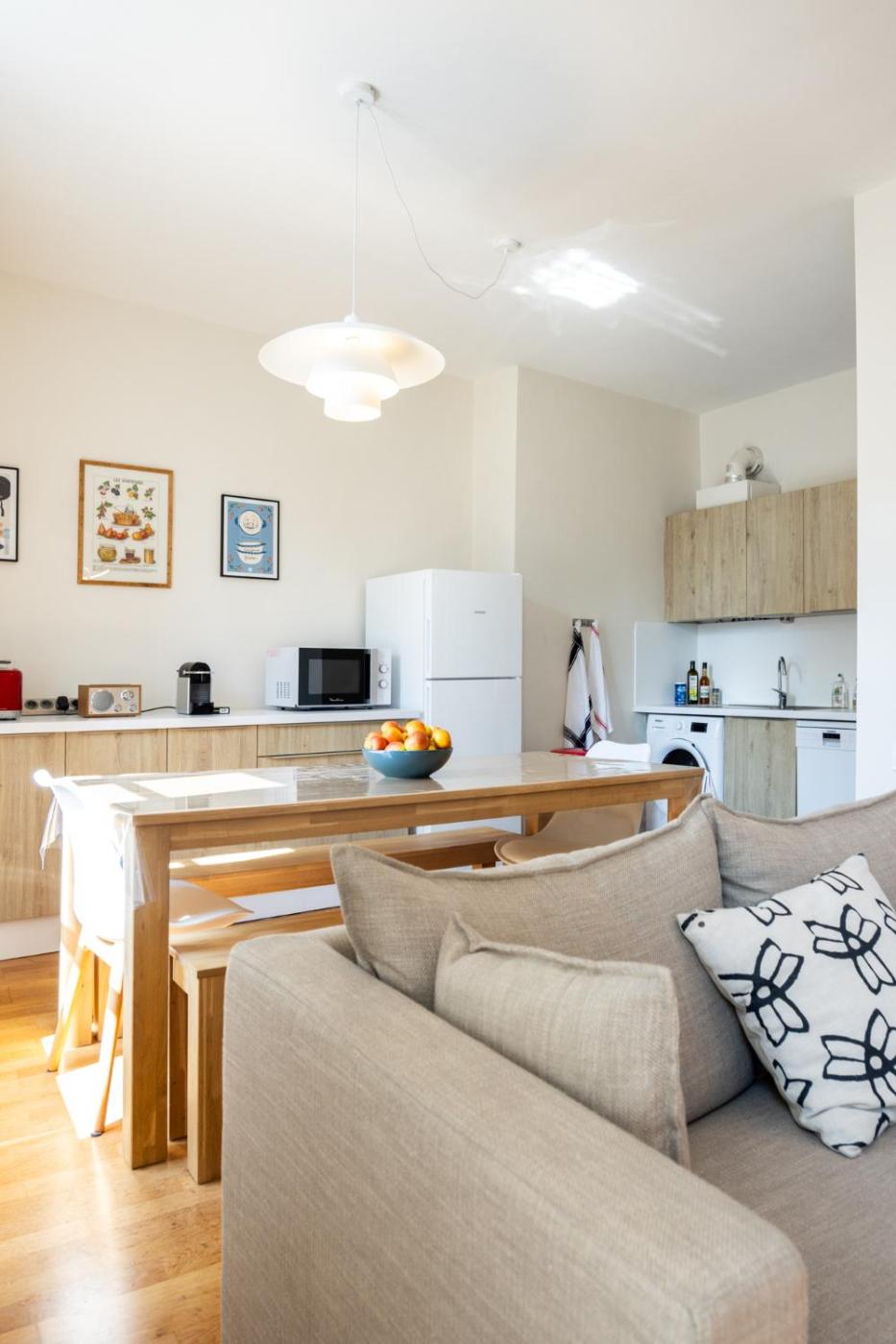 Appartement 2 Chambres. This spacious apartment is comprised of 1 living room, 2 separate bedrooms and 1 bathroom with a bath and free toiletries. The well-fitted kitchen features a stovetop, a refrigerator, a dishwasher and kitchenware. The apartment offers a flat-screen TV with streaming services, a washing machine, a private entrance, a tea and coffee maker as well as garden views. The unit offers 3 beds.
