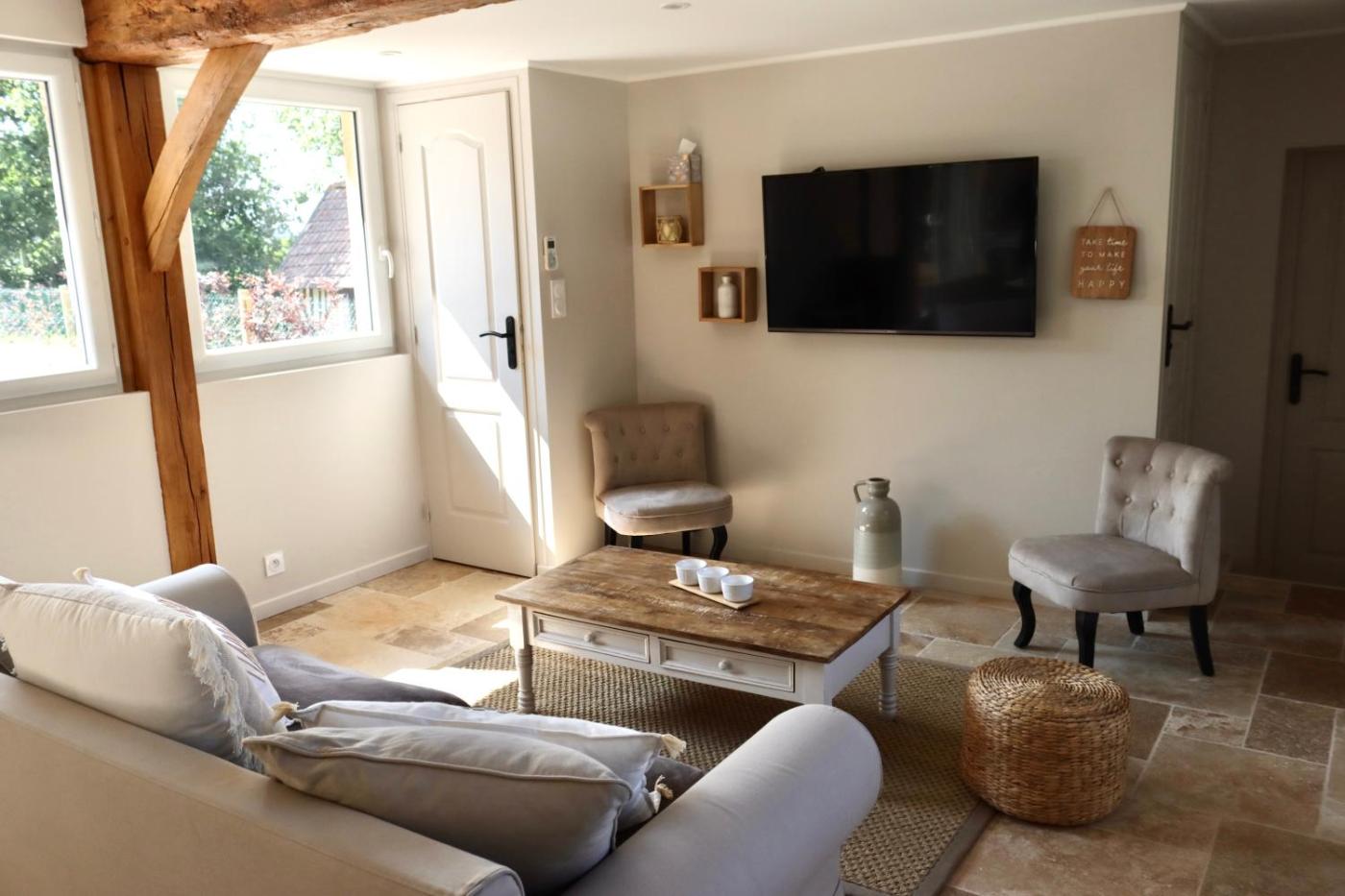 Maison 2 Chambres. The fireplace is a top feature of this holiday home. Guests will find a refrigerator, a dishwasher, kitchenware and an oven in the well-equipped kitchen. The holiday home also features a barbecue. The air-conditioned holiday home offers a flat-screen TV with streaming services, a washing machine, soundproof walls, a tea and coffee maker as well as garden views. The unit has 3 beds.