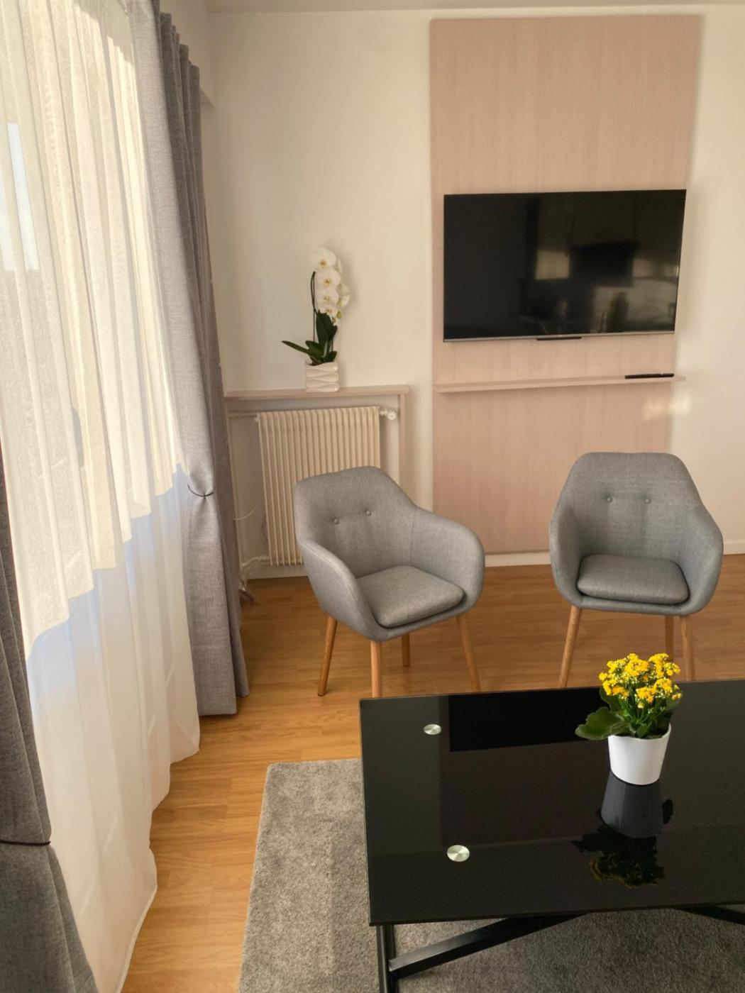 Appartement 1 Chambre. Featuring a private entrance, this apartment consists of a kitchen, 1 bedroom and 1 bathroom with a shower and a hairdryer. Guests can make meals in the kitchen that is equipped with a stovetop, a refrigerator, kitchenware and a microwave. The apartment provides a flat-screen TV with cable channels, a washing machine, soundproof walls, a tea and coffee maker as well as city views. The unit offers 1 bed.