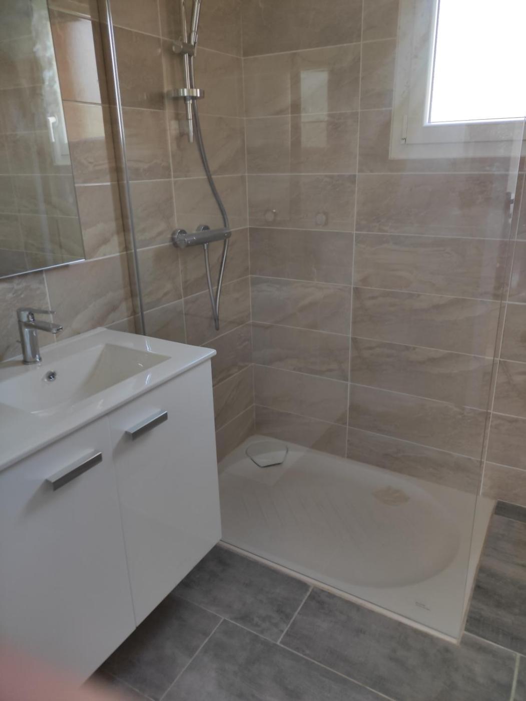 Villa 3 Chambres. Guests will have a special experience as the villa provides a pool with a view. Featuring a private entrance, this villa consists of 1 living room, 3 separate bedrooms and 1 bathroom with a walk-in shower and a hairdryer. The well-fitted kitchen has a stovetop, a refrigerator, a dishwasher and kitchenware. This wheelchair accessible villa features a washing machine, a seating area with a flat-screen TV and a roll-in shower. The unit offers 4 beds.