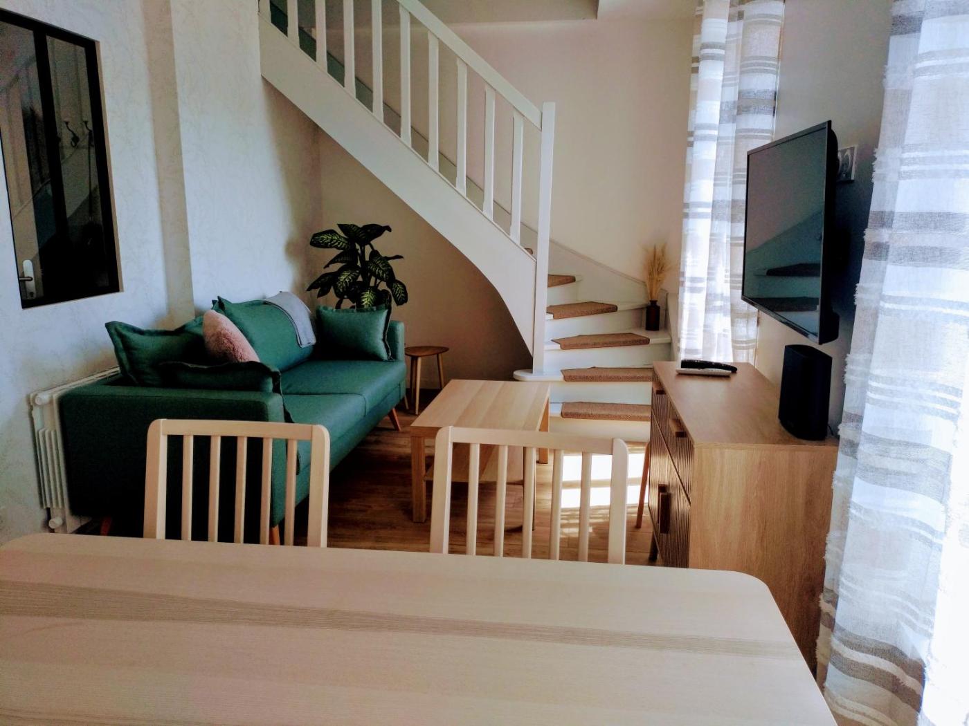 Appartement 2 Chambres. This apartment comes with 3 living rooms, 2 separate bedrooms and 1 bathroom with a shower and free toiletries. Guests can make meals in the kitchen that features a stovetop, a refrigerator, kitchenware and an oven. The apartment features a flat-screen TV with streaming services, a washing machine, a tea and coffee maker, a seating area as well as a quiet street view. The unit has 3 beds.