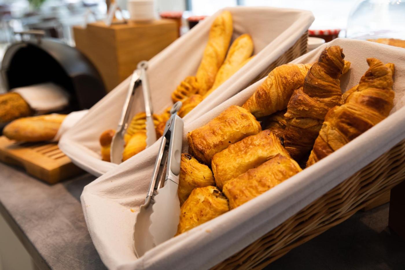 Un petit-déjeuner buffet est servi de 7h00 à 9h30 en semaine et de 8h00 à 10h00 le week-end. Vous pourrez prendre vos repas dans l’un des restaurants partenaires, situés à proximité, ou commander un panier-repas sur place.