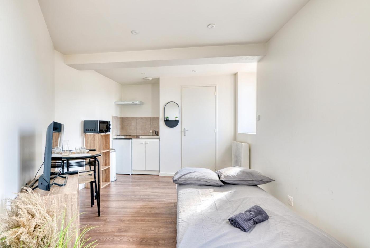 Studio. The apartment has a private bathroom, a washing machine, soundproof walls, as well as a seating area with a flat-screen TV. Guests can make meals in the kitchen that is fitted with a stovetop, a refrigerator, kitchenware and a microwave. The apartment offers a coffee machine, a sofa, parquet floors, heating and a TV. The unit has 1 bed.