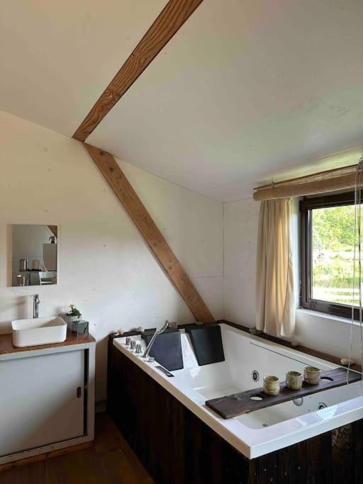 Cosy Cabane Boise solaire, Balneo bath et toilette seche a la Ferme