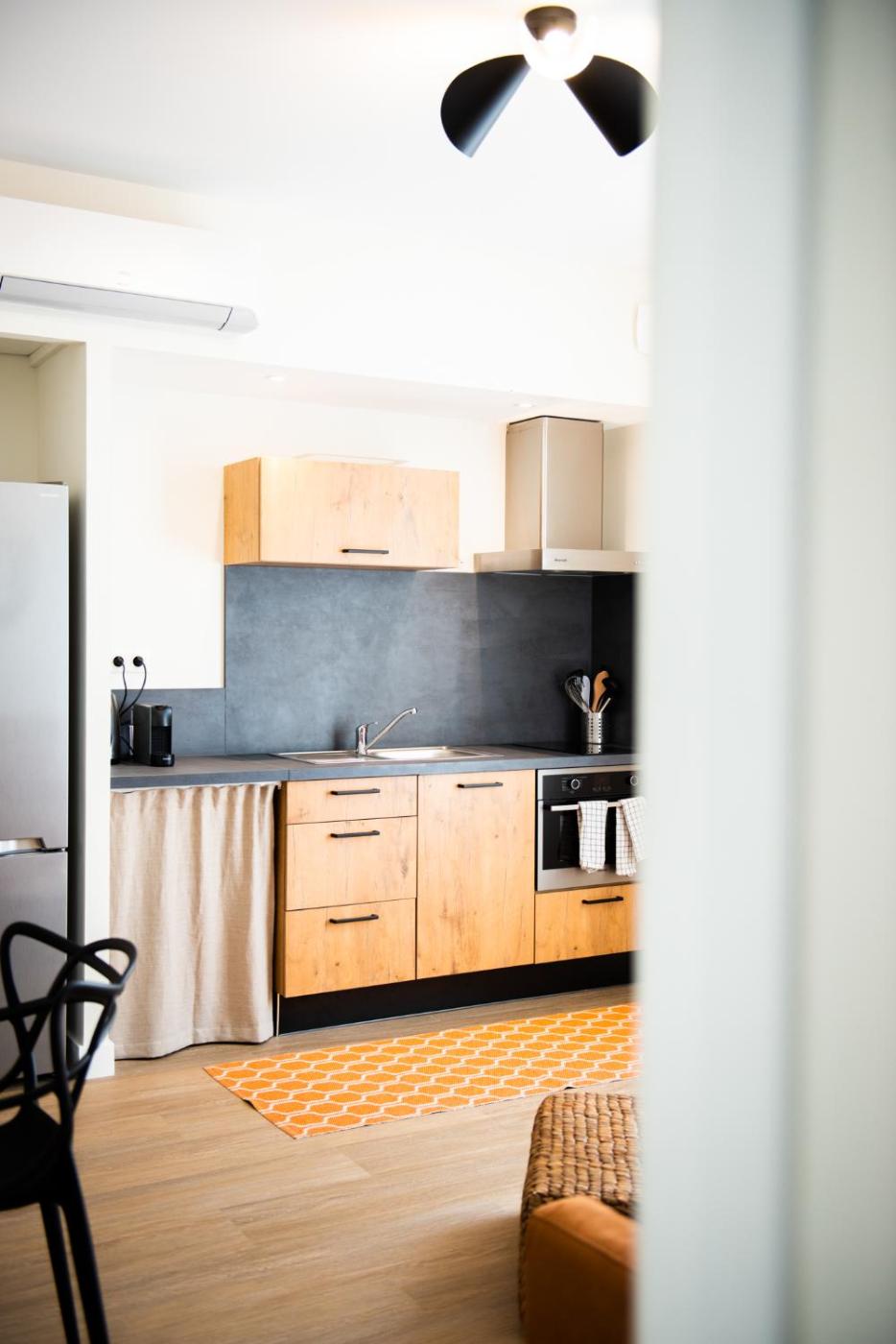 Appartement Deluxe. Cet appartement comprend un salon, une chambre séparée ainsi qu’une salle de bains avec une douche et des articles de toilette gratuits. La cuisine entièrement équipée est munie de plaques de cuisson, d’un réfrigérateur, d’un four et d’ustensiles. Offrant une vue sur la ville, cet appartement bénéficie de la climatisation et de murs insonorisés. Il dispose également d’une machine à café, d’un lave-linge et d’une télévision à écran plat avec services de streaming. Le logement comporte 2 lits. ;