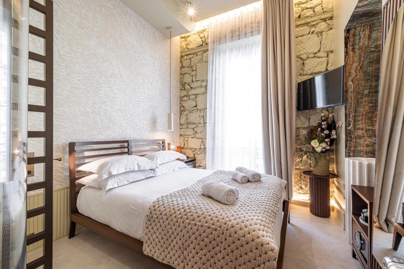 Chambre Double avec Balcon. Cette chambre double bénéficie d’un balcon offrant une vue sur la ville, de la climatisation, d’un minibar et d’une salle de bains privative avec douche à l’italienne. Le logement compte un lit. ;