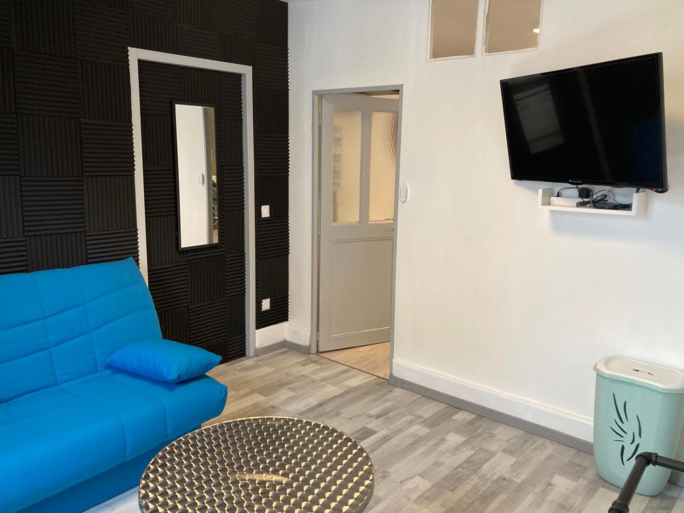 Appartement 1 Chambre. This apartment comprises 1 bedroom, kitchenette, a terrace and 1 bathroom with a shower. Guests can make meals in the kitchenette that comes with a stovetop, a refrigerator, kitchenware and an oven. The apartment provides a washing machine, a coffee machine, a dining area, a flat-screen TV, as well as city views. The unit offers 1 bed.