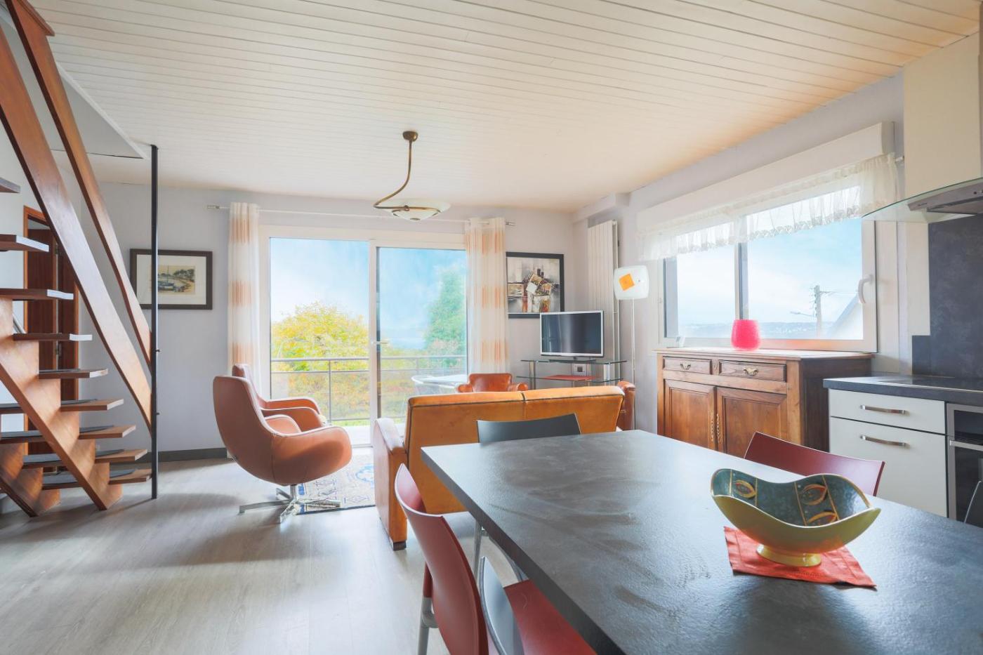 Villa - Vue sur Mer. Featuring 4 bedrooms and 2 bathrooms with a shower, this villa offers a well-fitted kitchen and a terrace. Guests will find a dishwasher, kitchenware, an oven and a microwave in the fully equipped kitchen. The villa also provides guests with a barbecue. Boasting a balcony with sea views, this villa also provides a washing machine and a TV with cable channels. The unit has 4 beds.