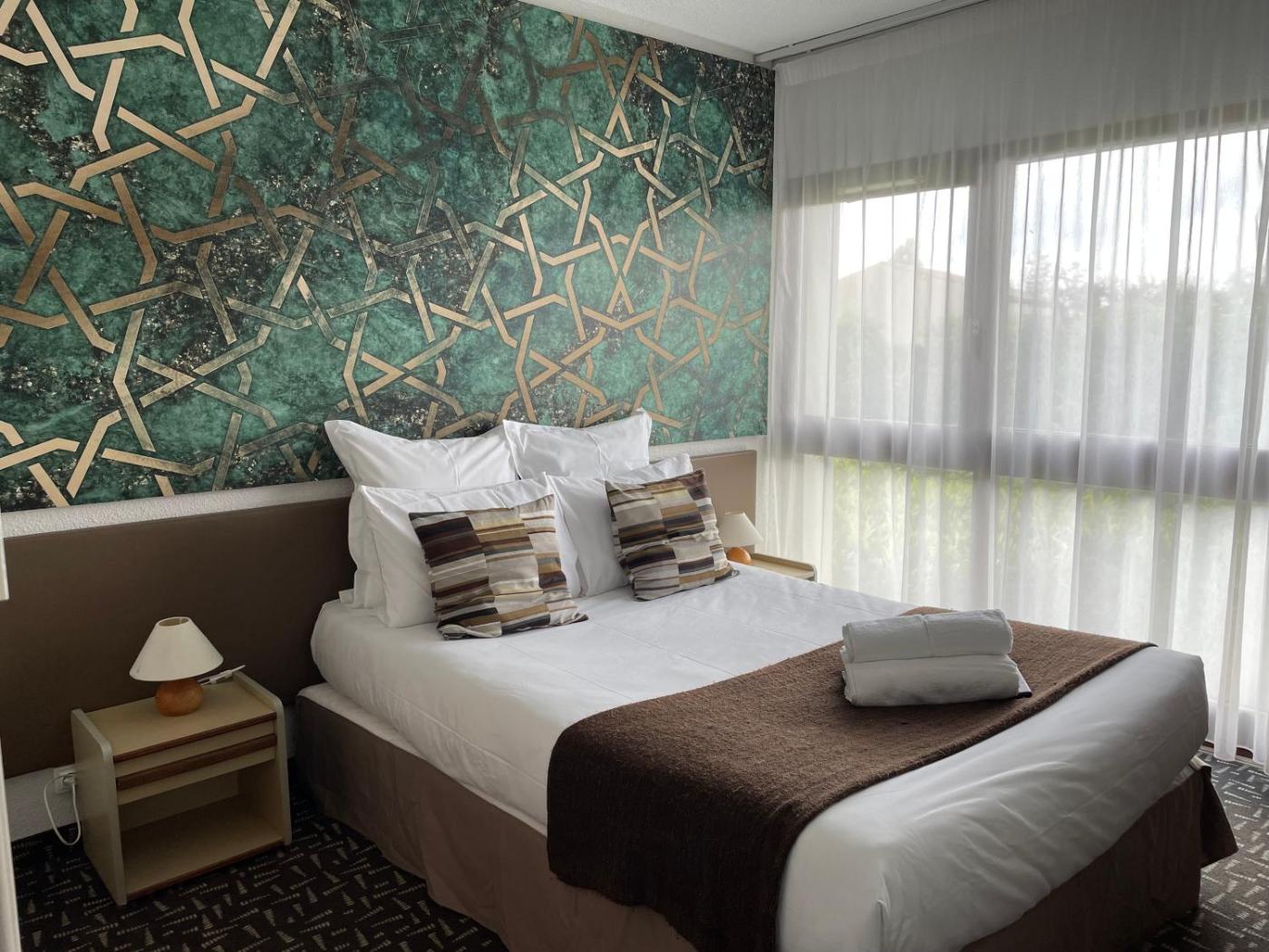 Chambre Lits Jumeaux. Providing free toiletries, this twin room includes a private bathroom with a bath or a shower and a hairdryer. The air-conditioned twin room provides a flat-screen TV with satellite channels, soundproof walls, a tea and coffee maker, a wardrobe as well as garden views. The unit offers 2 beds. ;