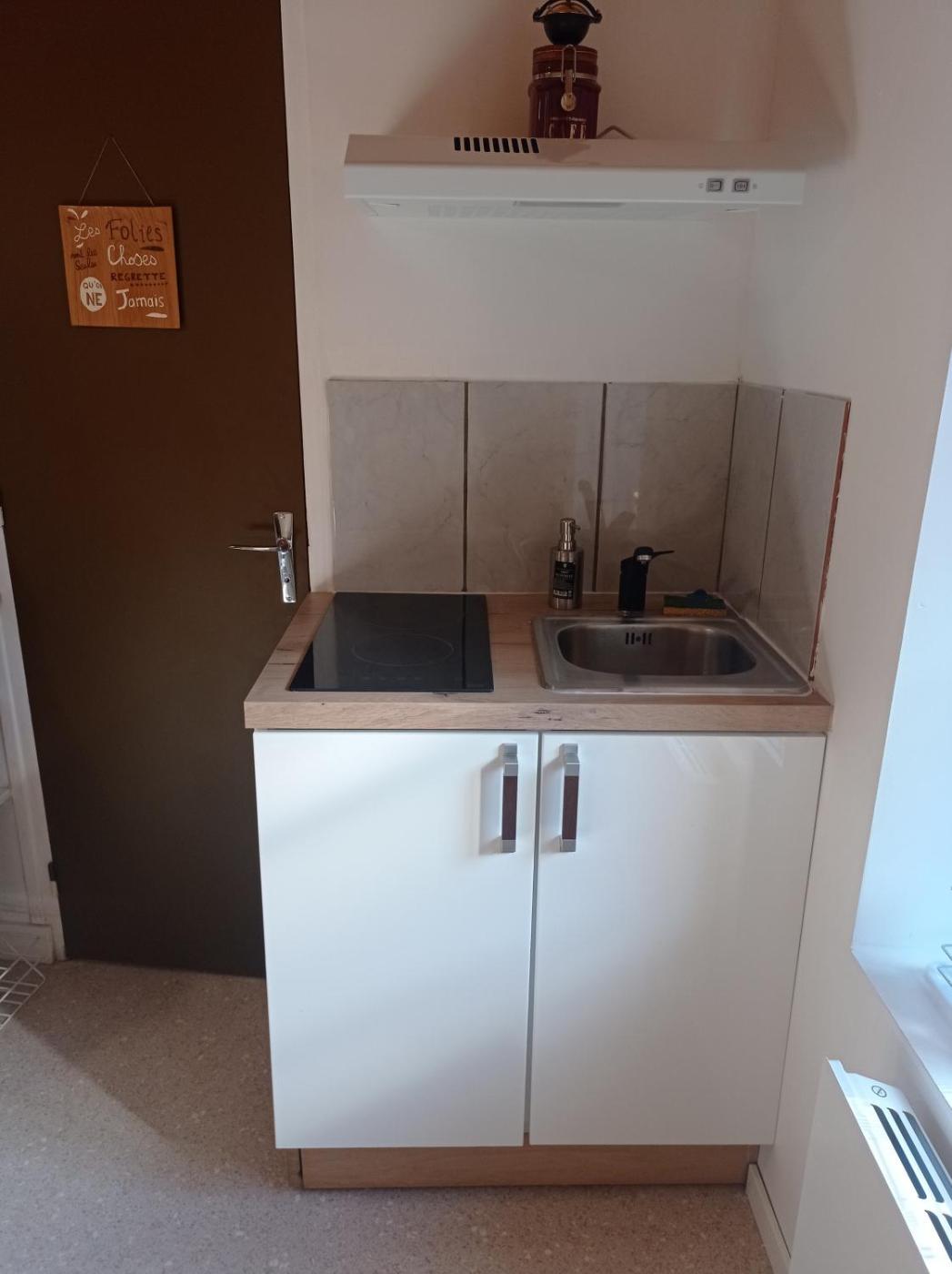 Appartement 1 Chambre. Boasting a private entrance, this apartment also comes with 1 bedroom, a seating area and 1 bathroom with a shower and a hairdryer. The well-fitted kitchen features a stovetop, a refrigerator, kitchenware and a microwave. This apartment has a tea and coffee maker, flat-screen TV with streaming services, ancourtyard view, as well as chocolate for guests. The unit has 2 beds. ;