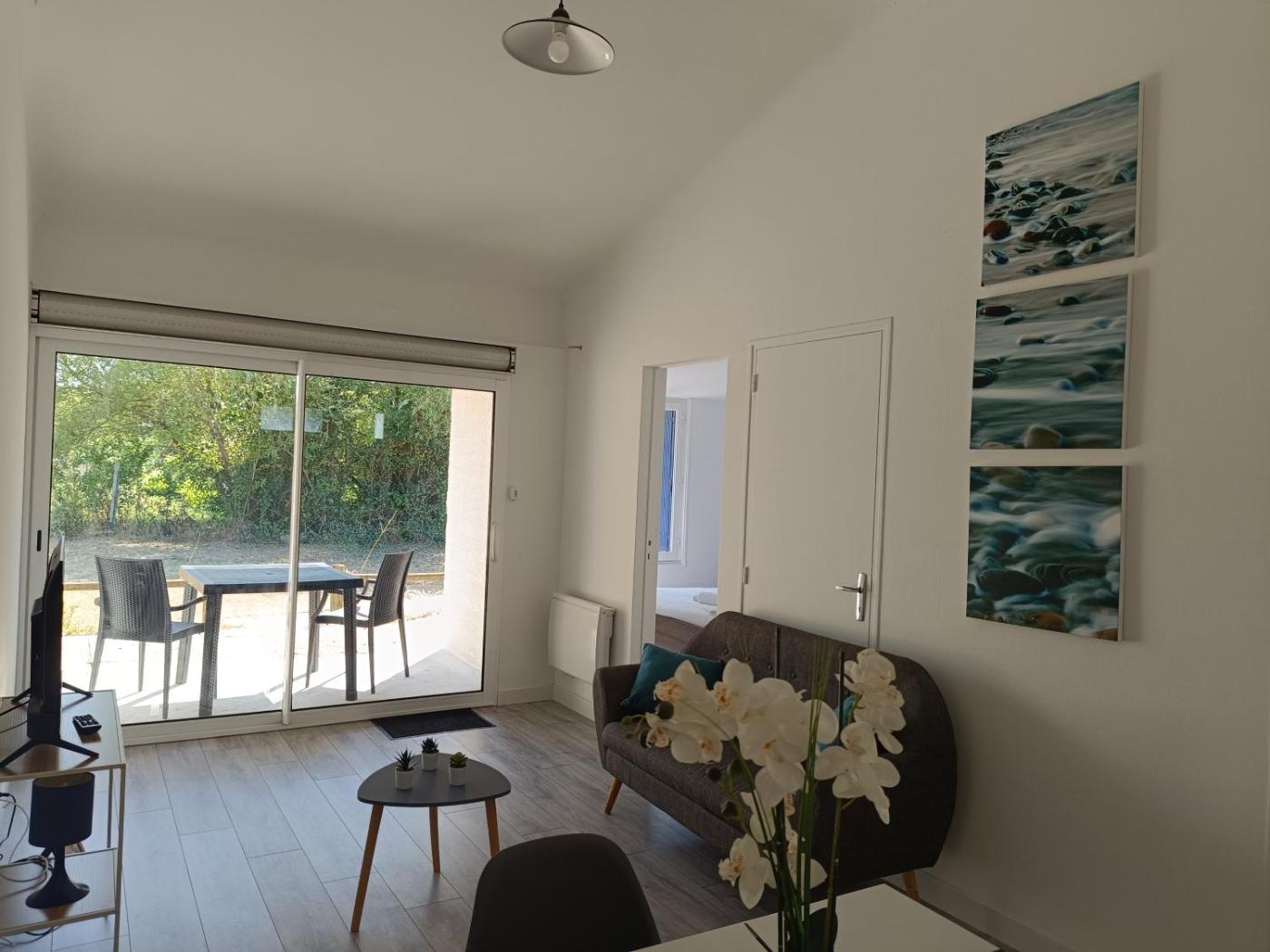 Maison 1 Chambre. Featuring a private entrance, this holiday home is comprised of 1 living room, 1 separate bedroom and 1 bathroom with a shower and a hairdryer. In the kitchenette, guests will find a stovetop, a refrigerator, kitchenware and a microwave. Boasting a terrace with garden views, this holiday home also offers a tea and coffee maker and a flat-screen TV. The unit offers 1 bed. ;