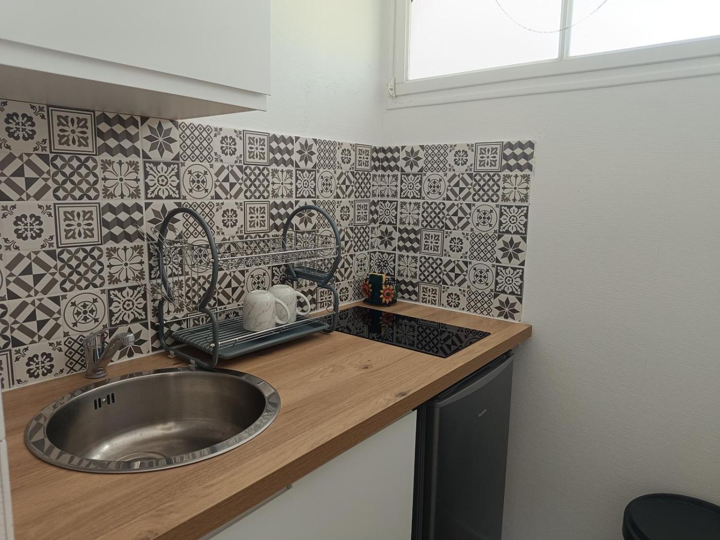 Maison 1 Chambre. Featuring a private entrance, this holiday home consists of 1 living room, 1 separate bedroom and 1 bathroom with a shower and a hairdryer. In the well-fitted kitchenette, guests will find a stovetop, a refrigerator, kitchenware and a microwave. Boasting a terrace with garden views, this holiday home also provides a tea and coffee maker and a flat-screen TV. The unit offers 1 bed. ;