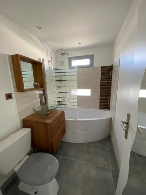 Maison 2 Chambres. Featuring a private entrance, this air-conditioned holiday home comprises a kitchen, 2 bedrooms and 1 bathroom with a bath and a hairdryer. Meals can be prepared in the well-fitted kitchen, which is equipped with a stovetop, a refrigerator, a dishwasher and kitchenware. Boasting a terrace with garden views, this holiday home also provides a washing machine and a flat-screen TV. The unit offers 2 beds.
