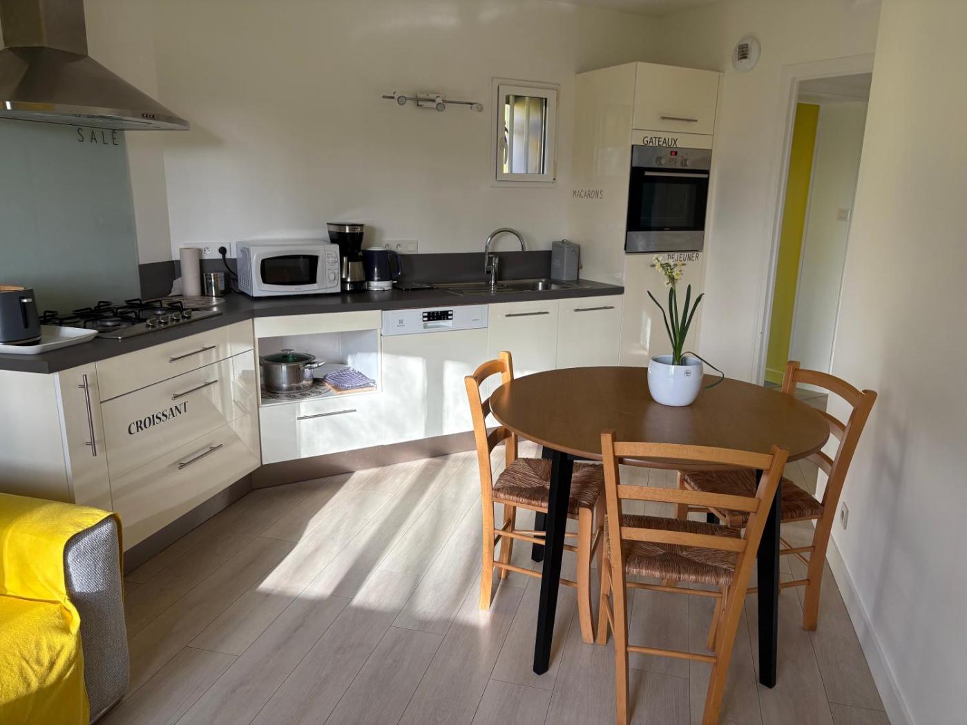 Maison 1 Chambre. Boasting a private entrance, this holiday home also includes 1 bedroom, a seating area and 1 bathroom with a shower and a hairdryer. Guests will find a stovetop, a refrigerator, a dishwasher and kitchenware in the well-equipped kitchen. The holiday home also features a barbecue. Featuring a terrace with garden views, this holiday home also offers a washing machine and a flat-screen TV. The unit has 1 bed.