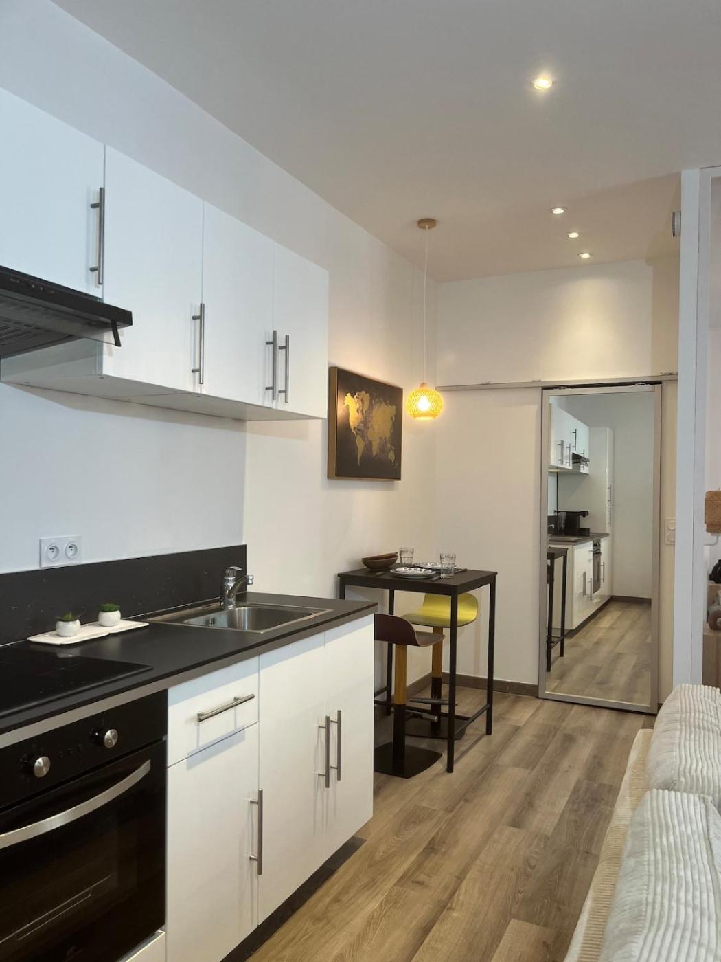 Appartement 1 Chambre. This apartment comes with 1 living room, 1 separate bedroom and 1 bathroom with a shower and free toiletries. The well-fitted kitchen has a stovetop, a refrigerator, an oven and a microwave. The apartment features parquet floors, a seating area with a flat-screen TV, a tea and coffee maker, a dining area, as well as a wardrobe. The unit has 2 beds.