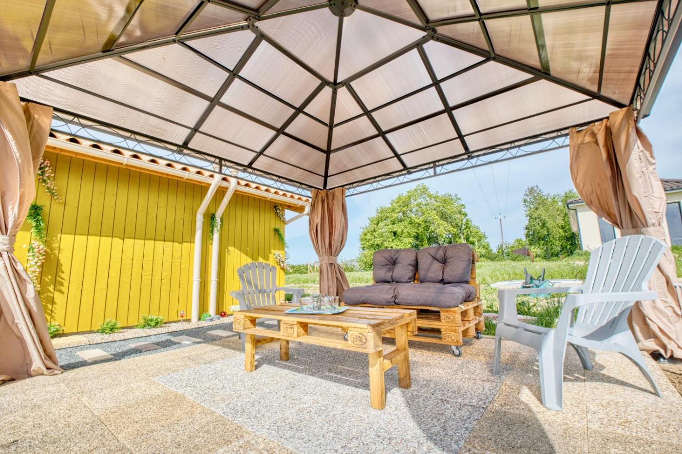 L’hébergement Chalet de campagne en Dordogne se trouve à Thénac, à respectivement 14 km, 31 km et 35 km de ces lieux d’intérêt : Golf du château des Vigiers, Golf du Château Les Merles et Golf de Barthe. Il comprend un balcon et une connexion Wi-Fi gratuite. Cet hébergement est installé à 20 km de : Gare de Bergerac. Il propose un jardin et un parking privé gratuit.