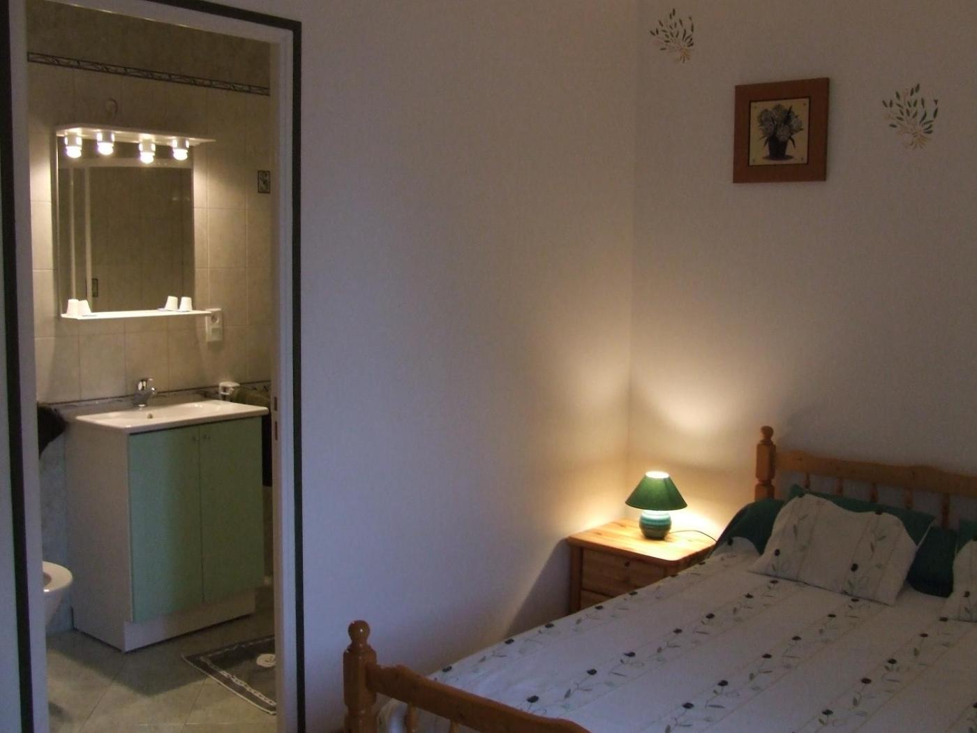 Chambre Double avec Salle de Bains Privative. Providing free toiletries, this double room includes a private bathroom with a shower and a hairdryer. Meals can be prepared in the kitchen, which is equipped with a stovetop, a refrigerator, kitchenware and an oven. The double room is fitted with a coffee machine, a dining area, a wardrobe as well as a high chair for children. The unit offers 1 bed.