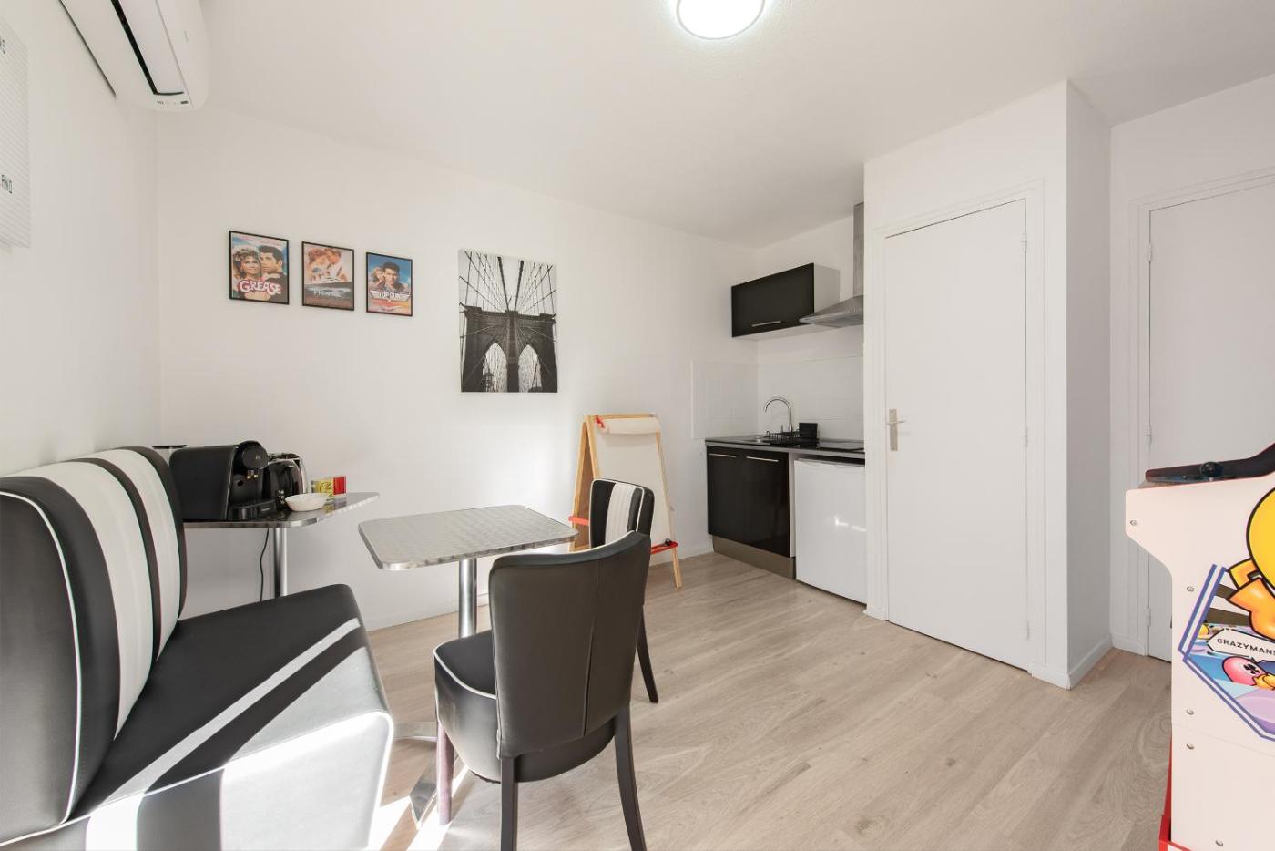 Appartement 1 Chambre. A kitchen fitted with a stovetop, a refrigerator and a microwave is available for cooking and storing food. Boasting a balcony, this apartment also offers air conditioning, a tea and coffee maker and a flat-screen TV. The unit has 1 bed.