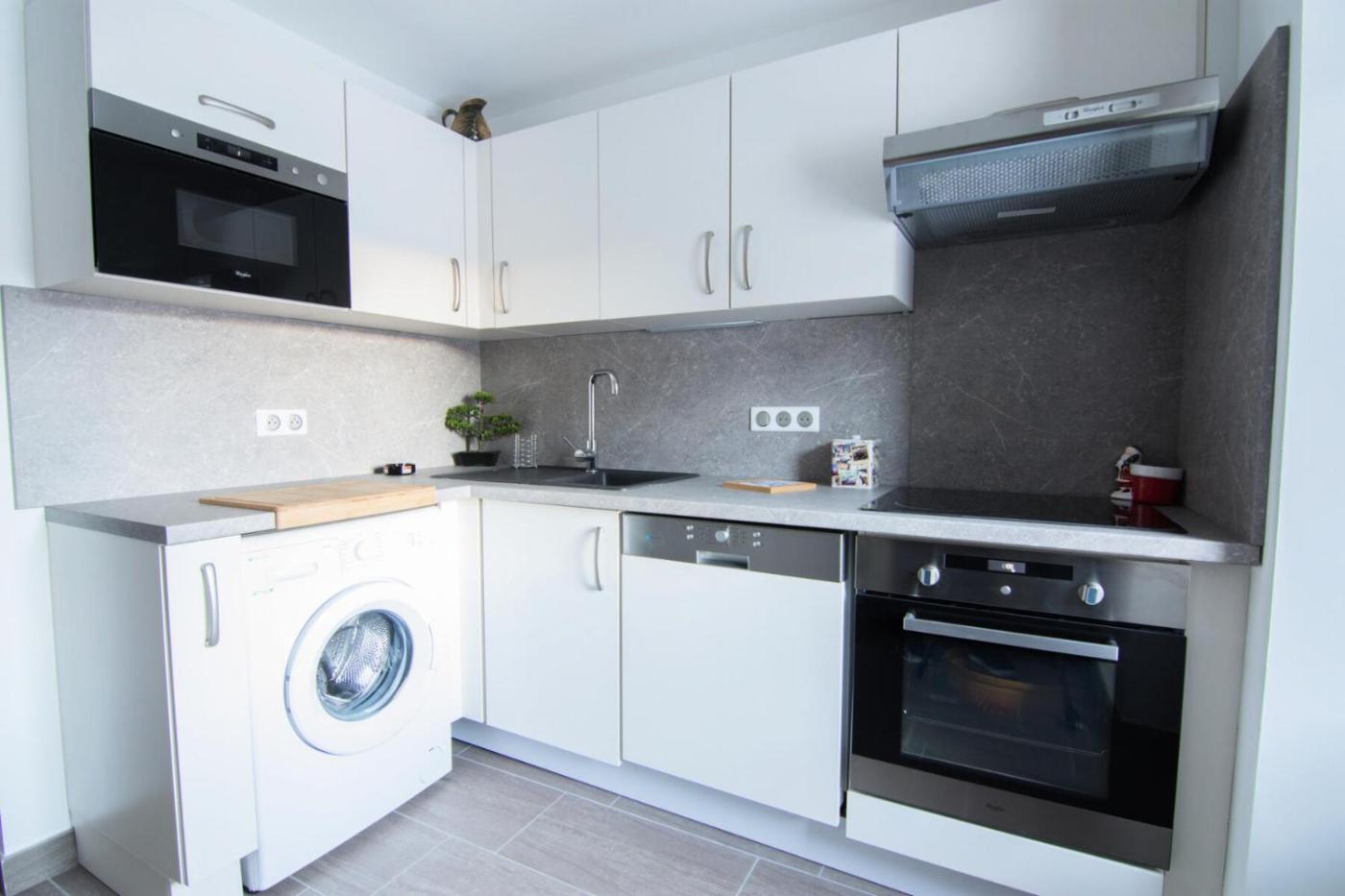 Appartement. The apartment has 2 bedrooms, 1 bathroom and a kitchen. The apartments kitchen, which features a dishwasher and a microwave, is available for cooking and storing food. Boasting a balcony, this apartment also offers a washing machine and a TV. The unit has 3 beds.
